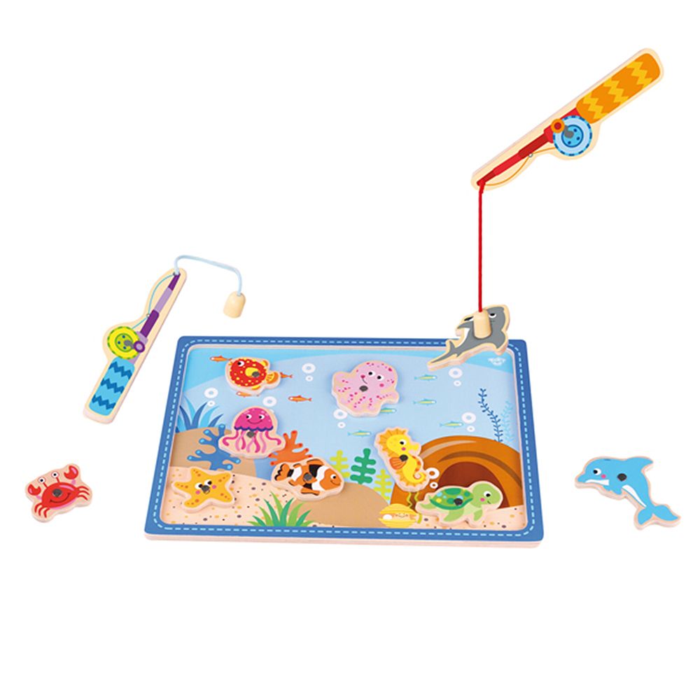 Класическа детска игра - "Риболов". Комплектът се състои от дървена игрална дъска, представляваща морското дъно, 10.....