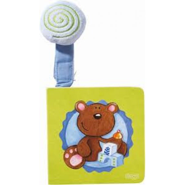 Велкро лепенката служи освен за закрепяне и за забавление – пришитата топка издава лек писклив звук. Закачалката е прикрепена с копче тип тик-так и така книжката може да се използва и докато детето си играе у дома.