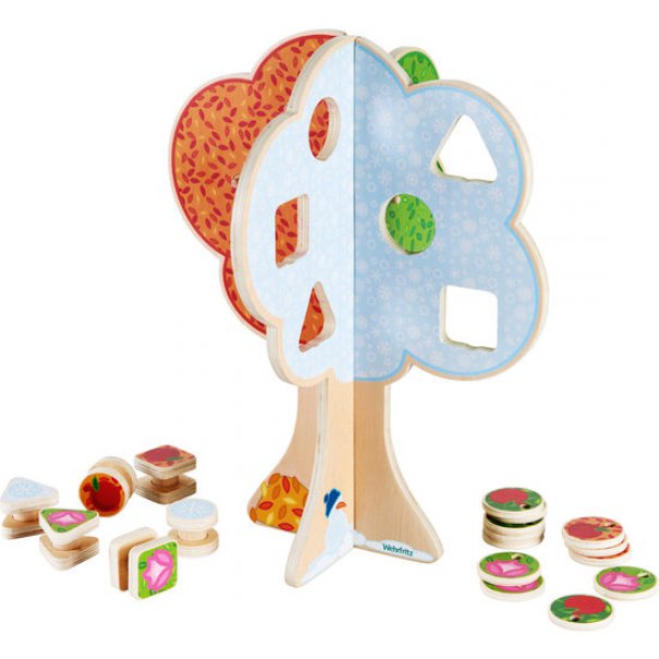 Природата играе ключова роля в педагогиката на Фридрих Фрьобел. Това дървено сезонно дърво е фантастичен начин да представите променящите се сезони. Приставките и декорациите имат прости, но привлекателни геометрични форми, които могат да бъдат съотнесени към сезоните и прикрепени към дървото. Това може да вдъхнови дискусии и възможности да научите нето повече за сезоните, естествените и геометричните фигури.