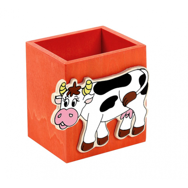 Дървен моливник - Крава, където всяко дете може да прибере грижливо моливите и флумастерите си.