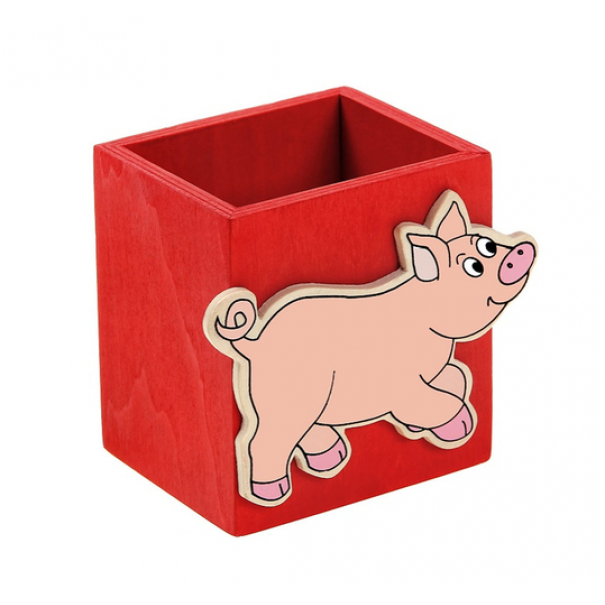 Дървен моливник - Прасенце, където всяко дете може да прибере грижливо моливите и флумастерите си.
