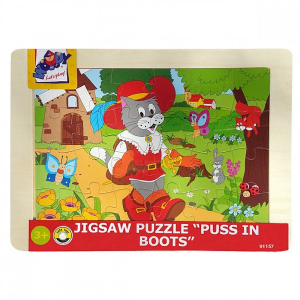 Класически пъзел от 24 елемента в дървена рамка. Пъзелът е проектиран така, че дори и най-малките да могат да го сглобяват. Дизайнът е съобразен с детските възможности - няма идентични части (напр. само небе или само трева) , а всеки елемент носи в себе си фигура или част от фигура, което помага на детето лесно да разпознае и напасне необходимите елементи.