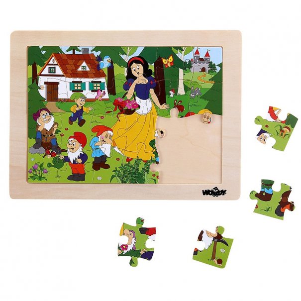 Класически пъзел от 24 елемента в дървена рамка. Пъзелът е проектиран така, че дори и най-малките да могат да го сглобяват. Дизайнът е съобразен с детските възможности - няма идентични части (напр. само небе или само трева) , а всеки елемент носи в себе си фигура или част от фигура, което помага на детето лесно да разпознае и напасне необходимите елементи.