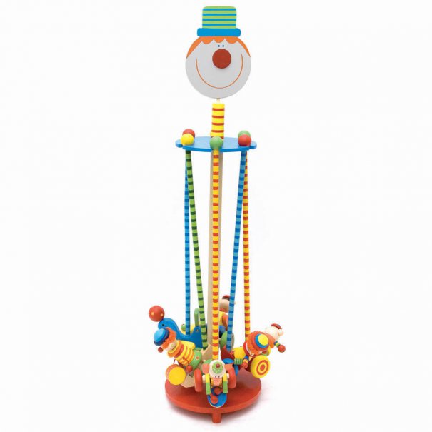 Кoгaтo дeтeтo бутa игpaчкaтa cи, клоунът удря странично по барабана.