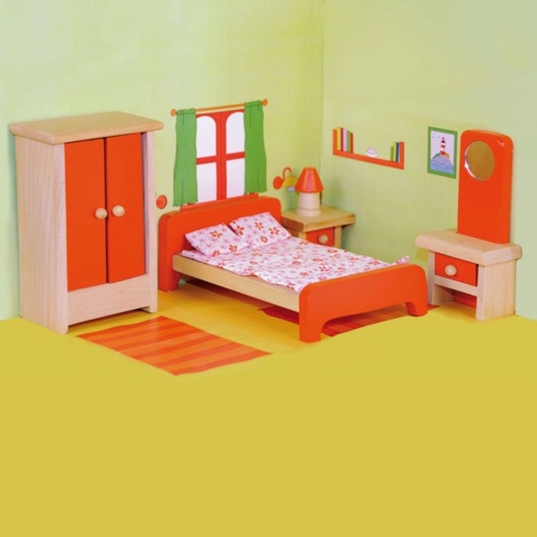 Комплект аксесоари за дървена къща за кукли - спалня за кукленско обзавеждане.