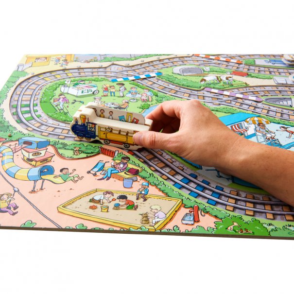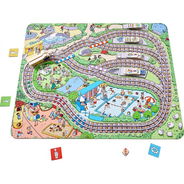 Пътници с билети за различни гари са в един влак. Те искат да отидат на зоологическата градина, на басейн, да похапнат сладолед или да поиграят в парка. Готови? Всички да се качват, моля. Играча се старае да качи колкото е възможно повече пътници във влака от своя цвят. Но внимавайте, линиите на влака се сменят. Трябва ти и малко късмет, за да се справиш с това. Играчът, който има най-много пътници на своята гара, побеждава в играта.