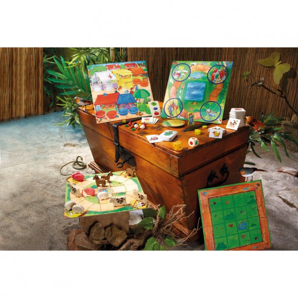 Този сборник за настолни детски игри обединява всички най-добри игри и е проектиран с много любов от немския производител Хаба! Този сборник съчетава Кооперативна игра за децата, детски игри с карти, игри за памет и игри със състезателен характер.