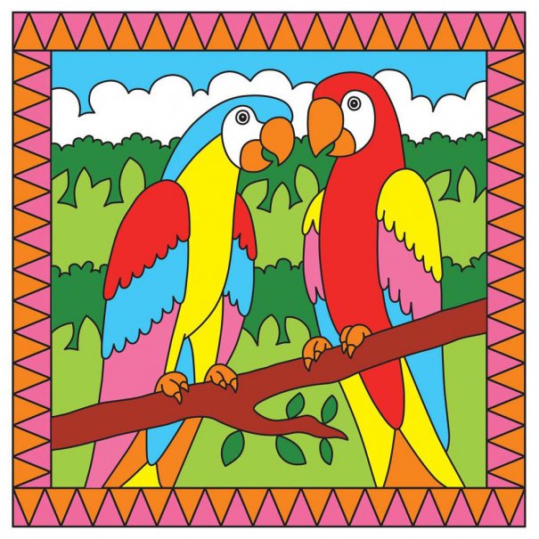 Комплект за рисуване по номера - Папагали/Тропически риби