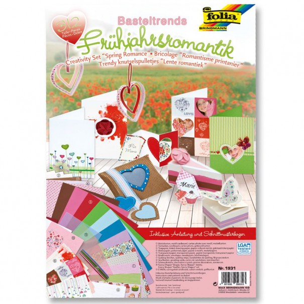 Комплектът съдържа 312 части: 7 бр. цветни хартии 130 g/ m² с размери 25 х 35 см; 4 бр. цветен картон 220 g/ m² с размери 25 х 35 см; 5 бр. дизайнерски картон 270 g/ m² с размери 24 х 34 см; 2 бр. дизайнерска хартия 80 g/ m² с размери 24 х 34 см; 3 бр. прозрачна хартия 115 g/ m² с размери 17.5 х 25 см, различни цветове; 1 бр. велпапе с размери 25 х 35 см ; 5 бр. бели пликове за писма; 6 бр. цветни основи за картички; 120 бр. разноцветни лентички за квилинг 160 х 3 мм; 75 бр. декоративни камъчета; 85 бр. хартиени декоративни елементи; инструкции за работа и модели за изработка.