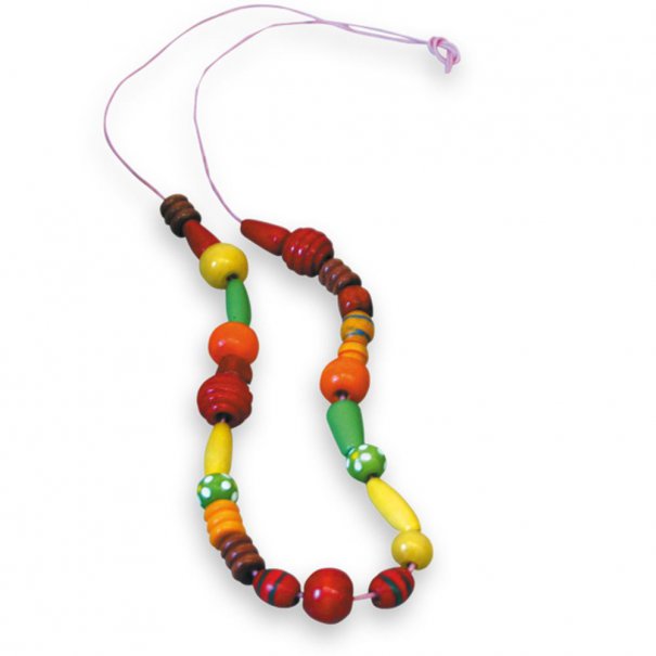 Детето развива сръчността при нанизването на мънистата. Правенето на герданчета и гривнички от различните по цвят дървени мъниста развиват фантазията на детето.