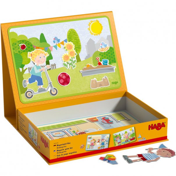 Подходящи са за игра с у дома или в движение. Децата могат да подпират капака на кутията и да подреждат елементите върху фоновите изображения.Магнитната кутия за детска градина съдържа набор от различни магнитни плочки за приятно подреждане на дейности, свързани с детската градина. Да играеш в пясъчната кутия, да свириш или да караш скутер?