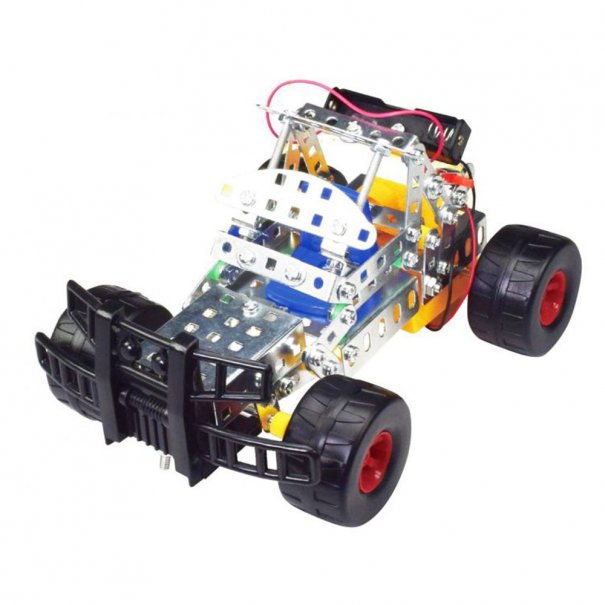 Избери своя конструктор, кола, мотор, джип или камион, идеален за начинаещи деца, които ще се научат как да сглобяват джип от метални шини с болтчета и гайки.