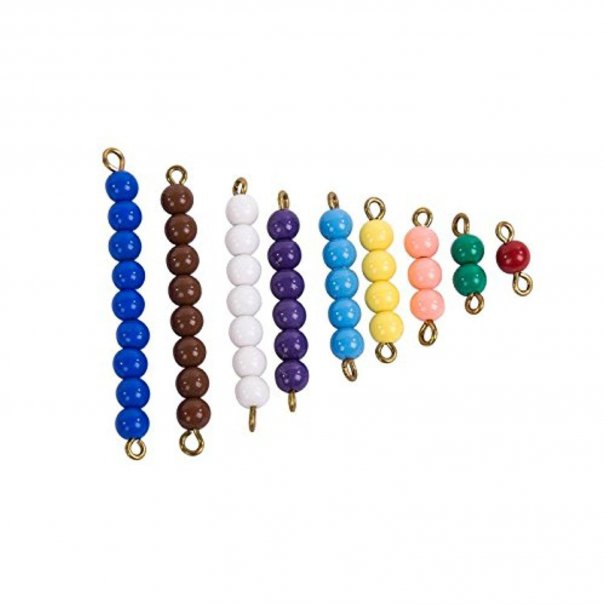 Нанизи от цветни мъниста, представляващи числата от 1 до 10.
