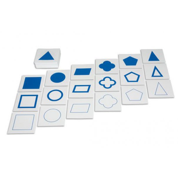 Този материал съдържа три комплекта карти с геометрични форми. Всеки комплект съдържа форми в геометричния шкаф като се различават по следното: