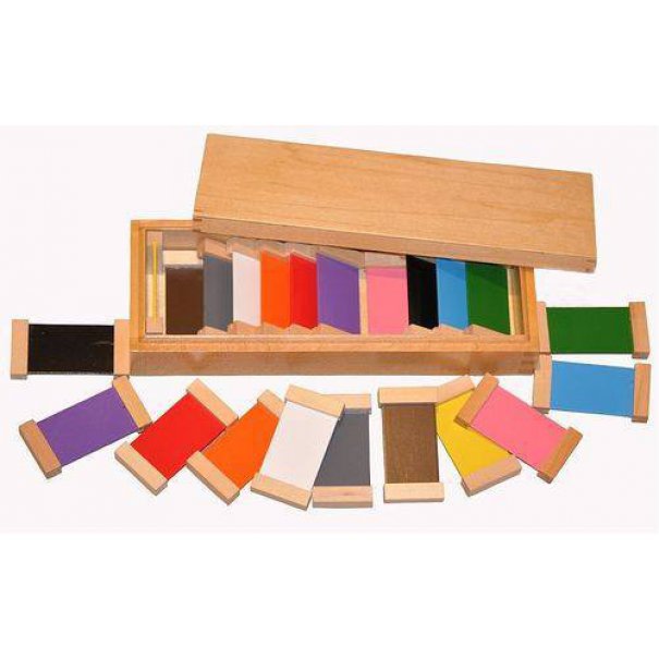 Целите на този Монтесори материал са развитие на визуалното възприемане на цветовете от детето; научаване на техните имена; развитие на фина и груба моторика посредством изваждане и прибиране на плочките; обединяване на предмети по даден признак (съставяне на двойки от плочите), подготовка за математически и писмени упражнения.