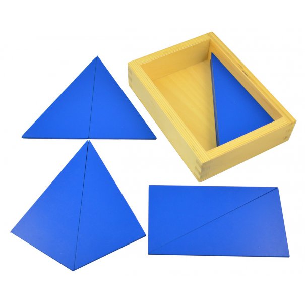 Този материал съдържа дървена кутия с капак, в която има 12 различни по големина разностранни триъгълници в синьо, посредством които детето опознава понятията еквивалент, сходство и подобие.