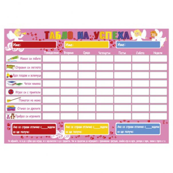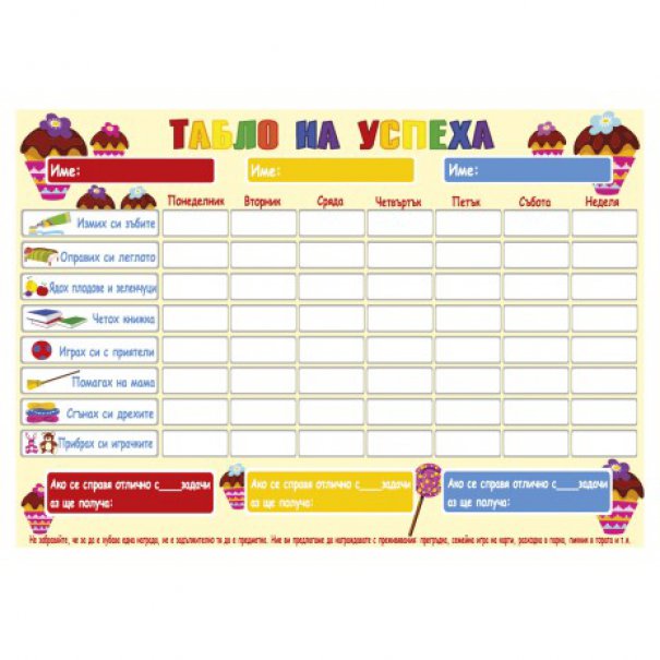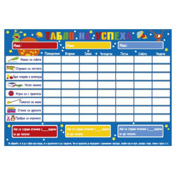 С нашето "Табло на успеха" вие можете заедно да определите детските задължения, да изберете награда, да отбележите успехите.