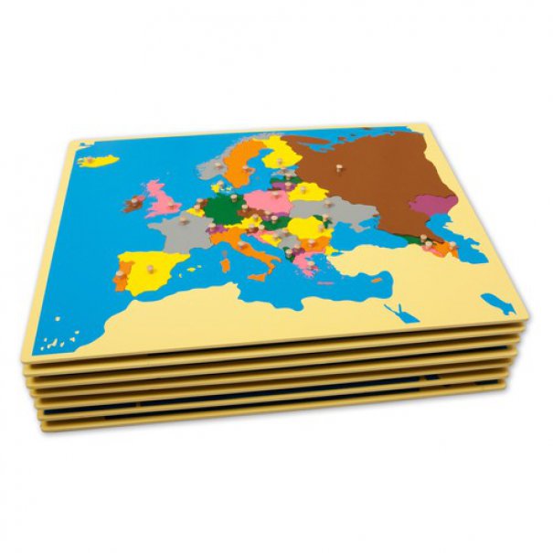 8 пъзела, Карти на континентите със стойка - Монтесори материали