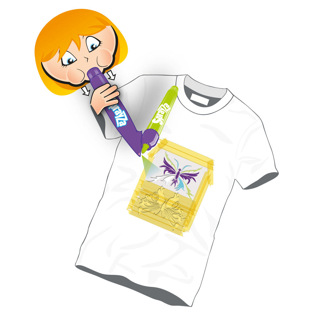 С този комплект от 3 флумастера, уред за духане и шаблони всеки малък художник може да направи сам изображение върху сво.....