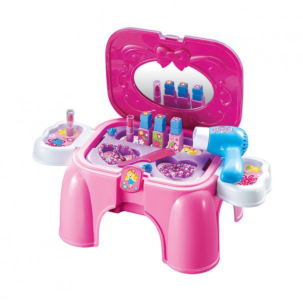 Детско пластмасово столче, което за миг се превръща в студио за красота за всяка суетна млада дама.